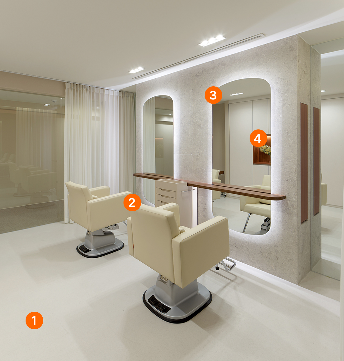 역삼점은 ‘URBAN LUXURY’ 콘셉트로 설계된 업계 최고 수준의 인테리어를 자랑합니다. 고급 호텔에 들어선 듯한 세련된 무드와 디테일은 방문 고객의 만족을 넘어, 디자이너의 브랜드 가치까지 높여줍니다.